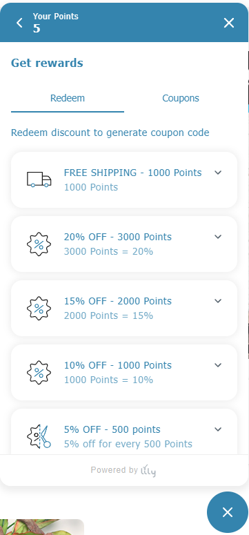 If you have enough points, simply click on any of these to redeem and a unique code will be generated for you to use on your order! Simple as that!